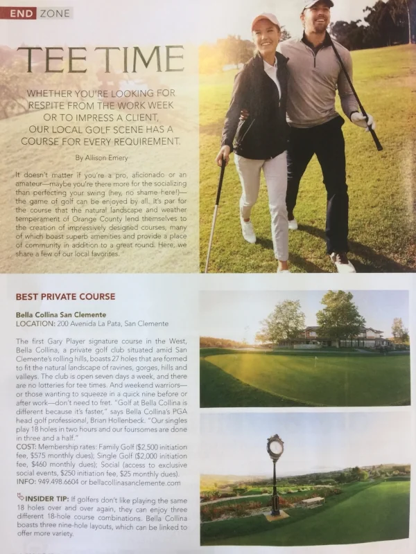 Bella Collina San Clemente was named BEST PRIVATE COURSE in the Spring 2017 edition of Orange County Magazine, Ladera Ranch Magazine, and Coto De Caza Quarterly.